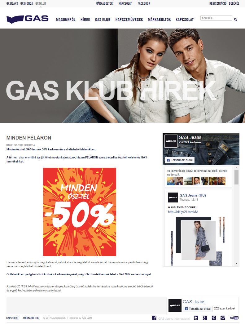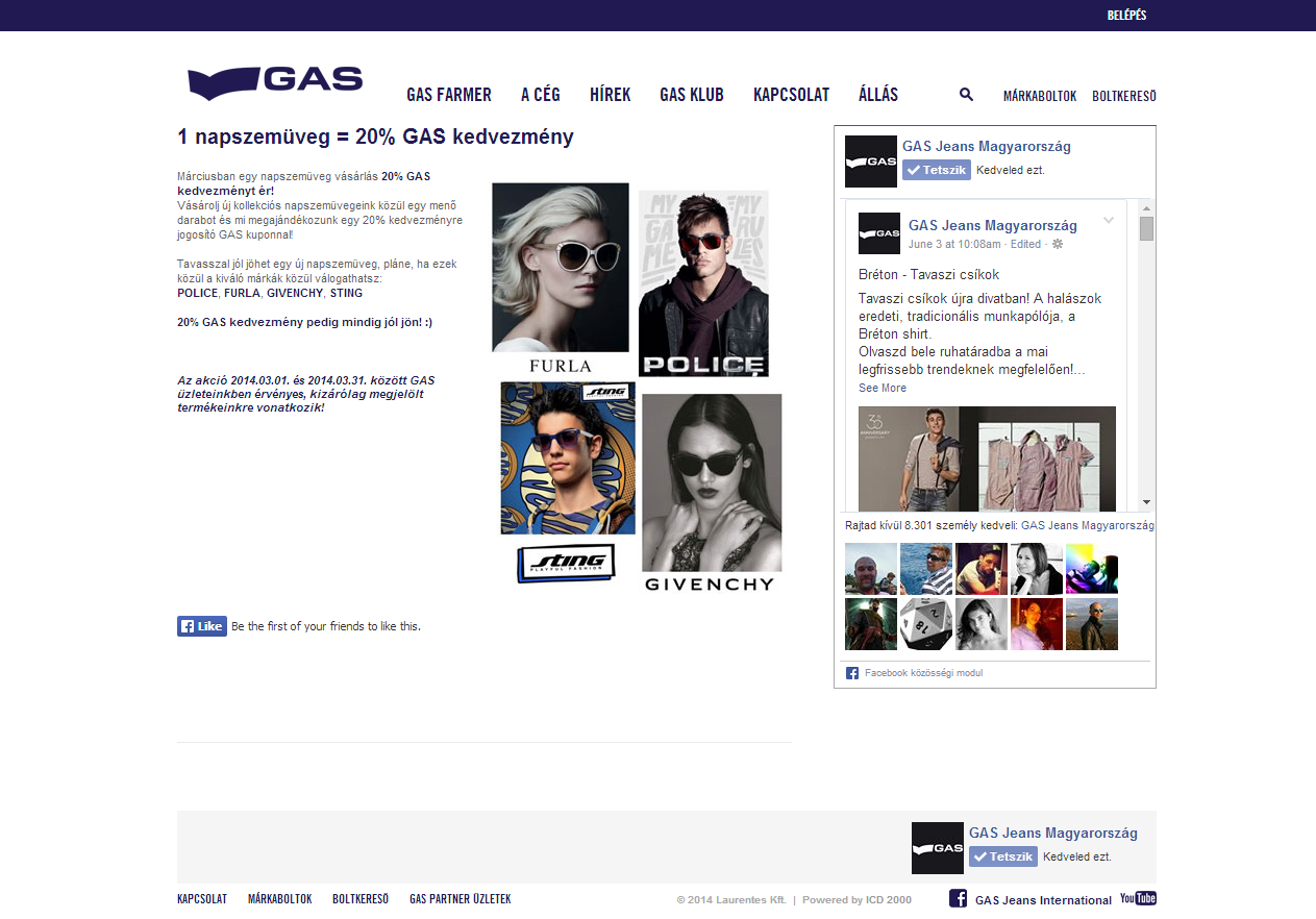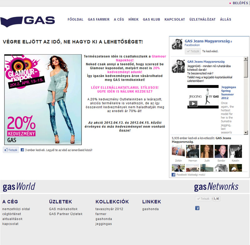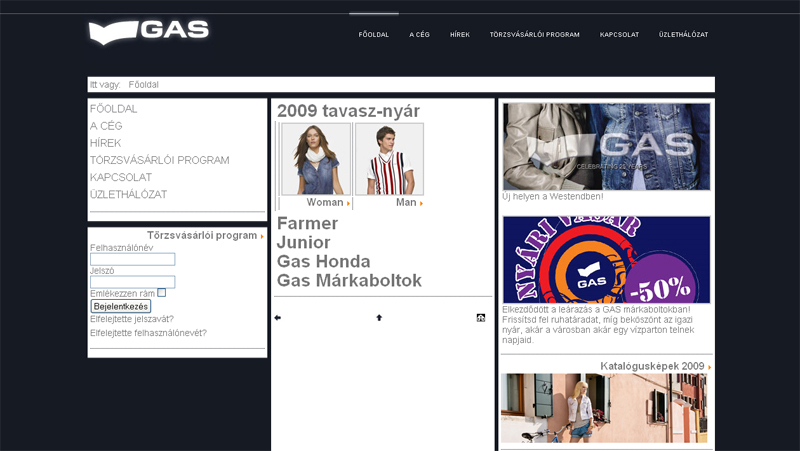 A GAS Jeans magyarországi leányvállalatának weboldalának és törzsvásárlói programjának fejlesztése és üzemeltetése.