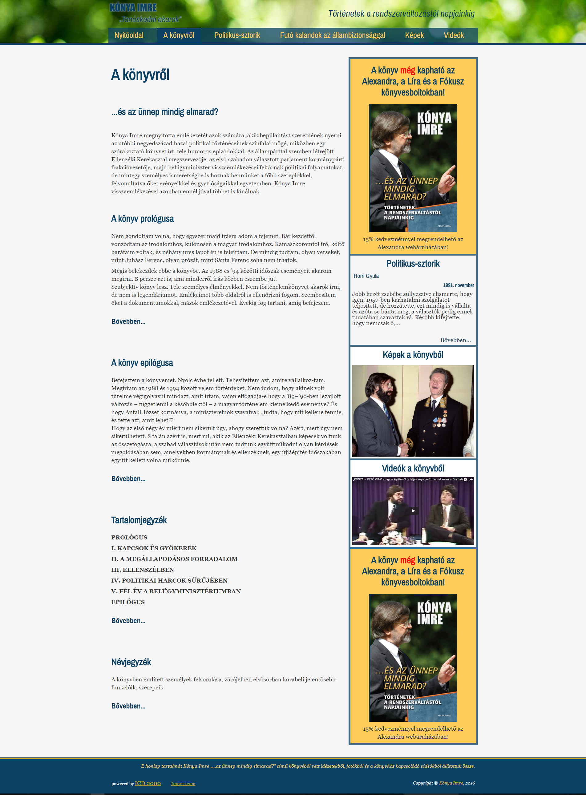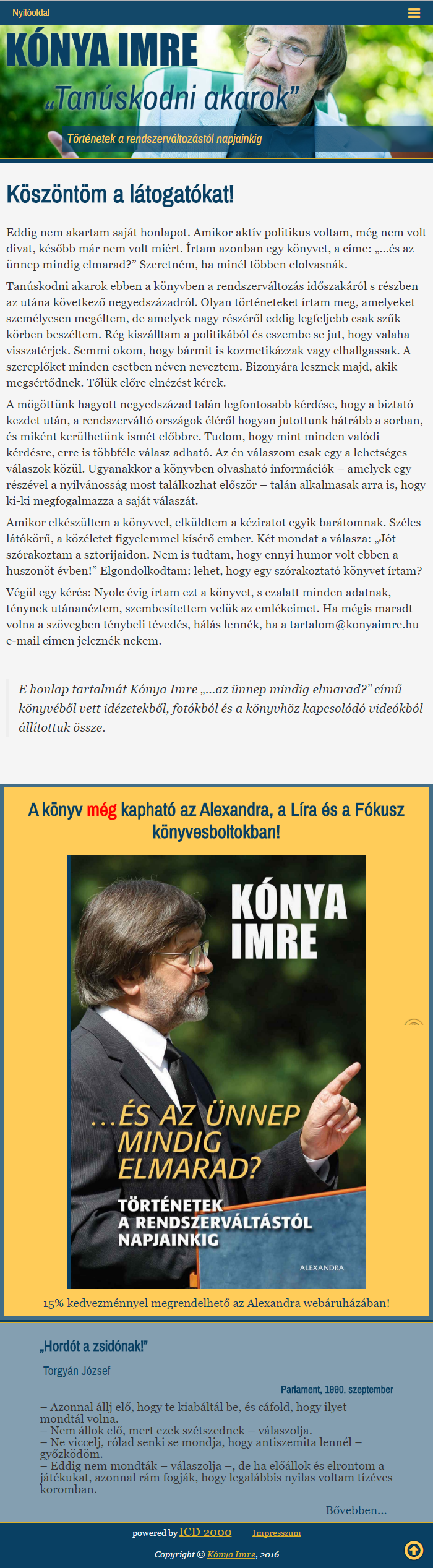 Kónya Imre, "...És az ünnep mindig elmarad?" című könyvének hivatalos weboldala.